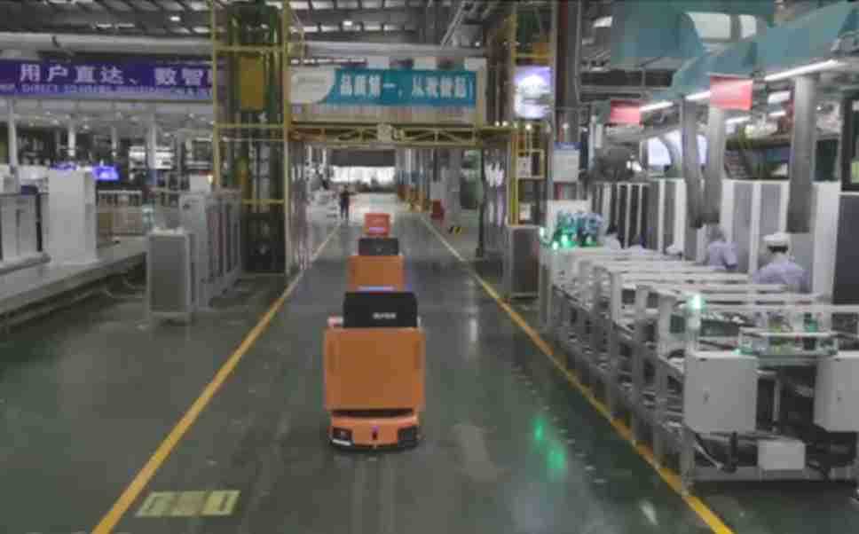 为车载冰箱物流配送打造的智能解决方案,,,包含产中物流通过潜伏举升AMR搬运至线边,,产后成品物流智能仓储,,流程包含产中物流智能齐套入库,,,线边安灯叫料AMR智能配送至线边,,,成品入库、、、、出库,,,通过无人堆高车机器人,,,智能仓储管理替代人工作业管理,,,,实现更高存储、、更高效率、、、、更具柔性化的解决方案。。